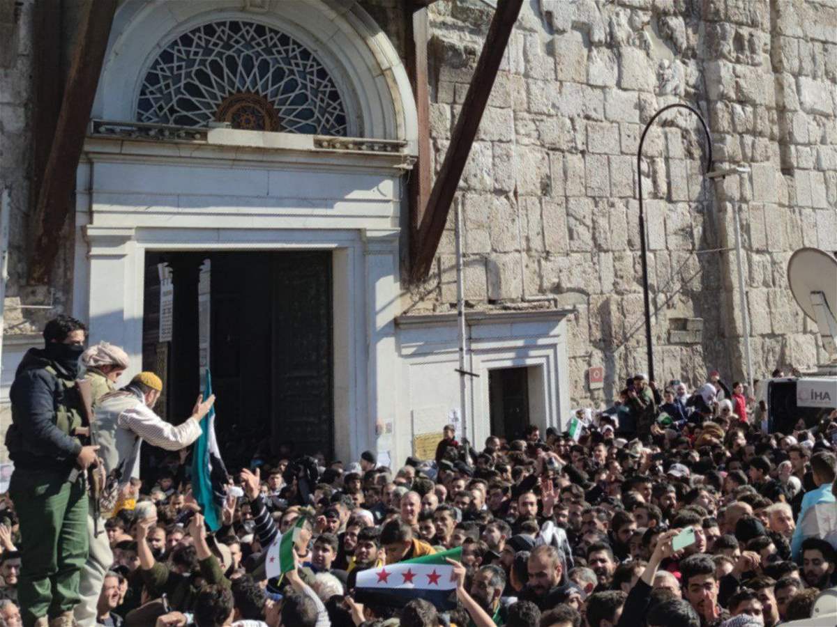 توافد آلاف السوريين الى باحة المسجد الأموي في دمشق، لأداء صلاة الجمعة بمشاركة قائد هيئة تحرير الشام أحمد الشرع.