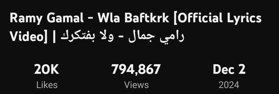 جدير بالذكر، طرح الفنان رامي جمال في 2 ديسمبر الماضي أغنية جديدة تحمل اسم ولا بفتكرك عبر موقع الفيديوهات يوتيوب وجميع وسائل التواصل الاجتماعي .