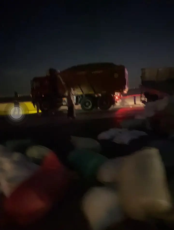 وقع منذ قليل حادث انقلاب سيارة تريلا محملة بالمواد الغذائية أعلى طريق الأوسطي بأكتوبر.