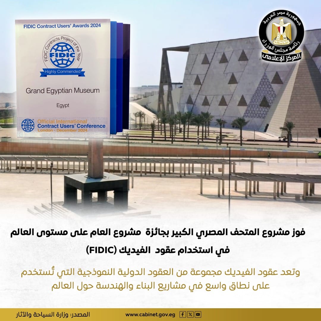 فاز مشروع المتحف المصري الكبير بجائزة مشروع العام على مستوى العالم في استخدام عقود الفيديك (FIDIC).