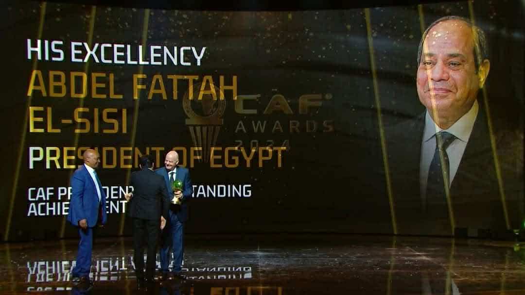إلى ذلك وصل الدكتور أشرف صبحي وزير الشباب والرياضة الي مراكش بالمغرب ، لتسلم الجائزة نيابةً عن رئيس الجمهورية خلال الحفل السنوي لتوزیع جوائز الاتحاد الأفريقي لكرة القدم 2024 والتي قرر الاتحاد الأفريقي لكرة القدمً منحها رئيس الجمهورية نظرا لجهود سيادته الكبيرة في تطوير ونمو كرة القدم في مصر والقارة الإفريقية من خلال تطوير البنية التحتية والمرافق المميزة لكرة القدم التي تم بناؤها في مصر، وساهمت بشكل كبير في التنمية ونمو كرة القدم في مصر والقارة الإفريقية.