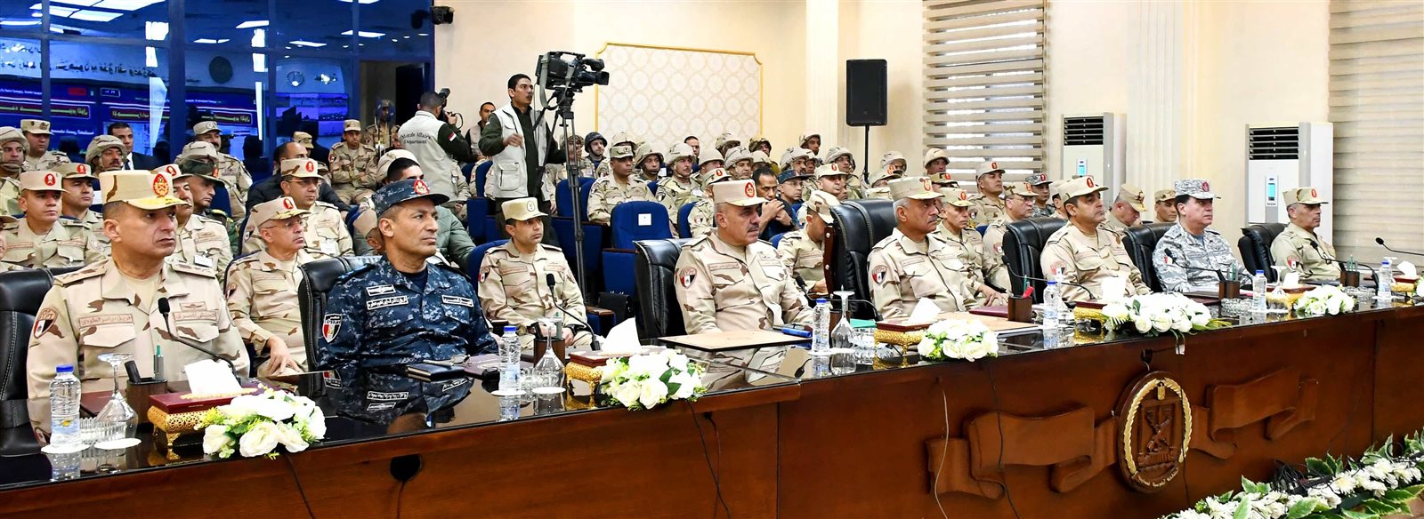 ونقل الفريق أول / عبدالمجيد صقر تحيات وتقدير السيد الرئيس / عبدالفتاح السيسى رئيس الجمهورية القائد الأعلى للقوات المسلحة لرجال المنطقة الجنوبية العسكرية وإعتزازه بالجهد الذى يبذلونه لتأمين الإتجاه الإستراتيجى الجنوبى والتصدى لأعمال التسلل والتهريب .