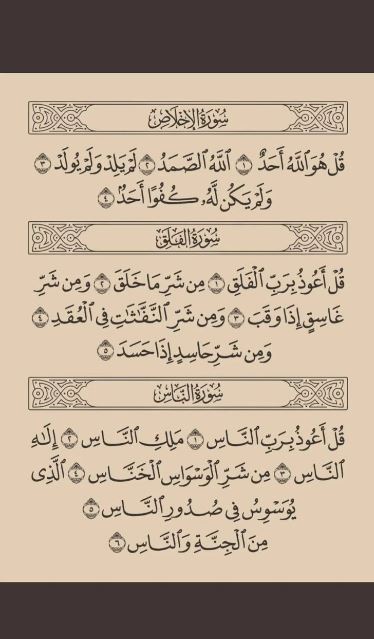 سورة الفلق: بِسْمِ اللّهِ الرّحْمنِ الرّحِيم.. «قُلْ أَعُوذُ بِرَبّ الْفَلَقِ * مِن شَرّ مَا خَلَقَ * وَمِن شَرّ غَاسِقٍ إِذَا وَقَبَ * وَمِن شَرّ النّفّاثَاتِ فِي الْعُقَدِ * وَمِن شَرّ حَاسِدٍ إِذَا حَسَدَ ».
