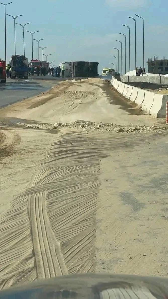 انقلاب سيارة نقل فنطاس محملة بالوقود، أعلي محور حسب الله الكفراوي بمنطقة حي الاسمرات اتجاه التجمع، بدون إصابات في اتجاه ا لمعادي.