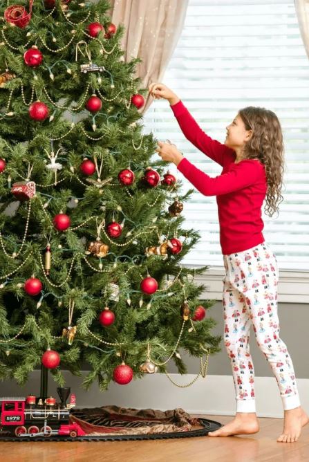 وقد تم تزيين شجرة تقليديا مع المأكولات مثل الشيكولاتة والتفاح والمكسرات، أو غيرها من الأطعمة. في القرن الـ18 بدأت تكون مضيئة من الشموع التي كانت نهاية المطاف حلت محلها أضواء عيد الميلاد بعد مجيء الكهرباء، في العصر الحالي يتم تزيين الشجرة بمجموعة واسعة من الحلي التقليدية مثل أكاليل والحلي وحلوى قصب، ويتم وضع نجمة أو تمثال ملاك في أعلى الشجرة رمزًا لقصة ميلاد المسيح.