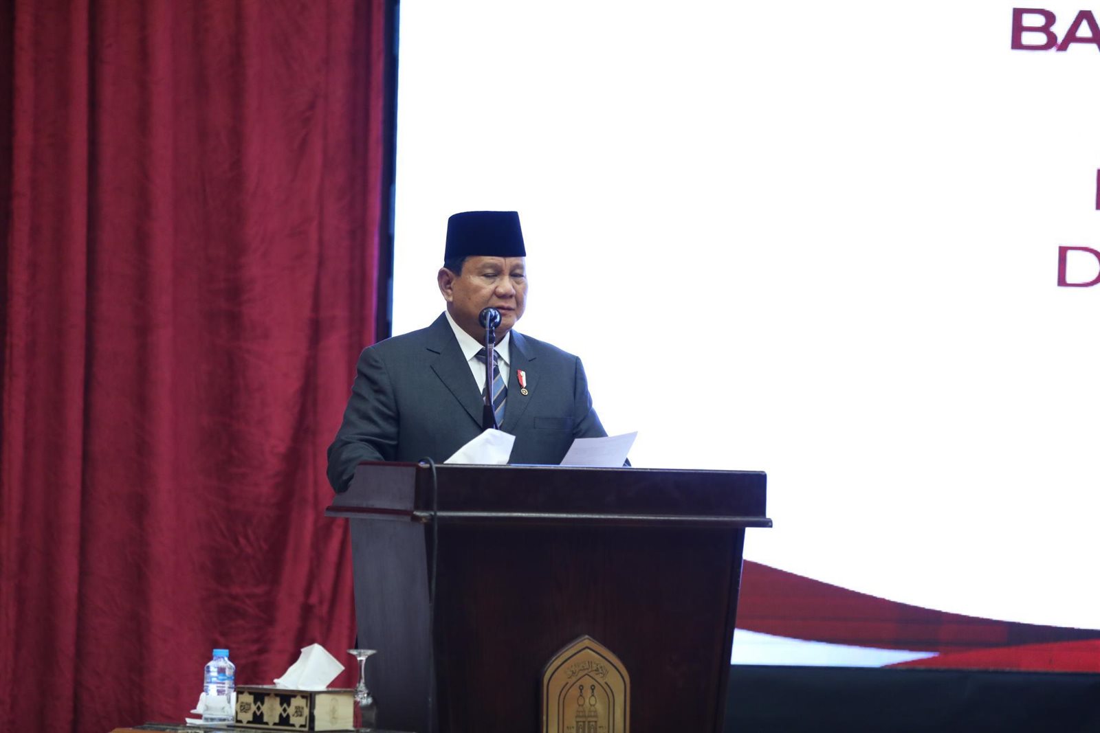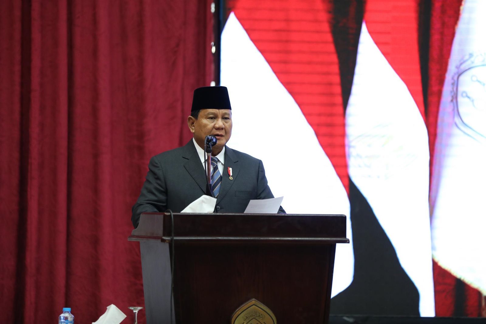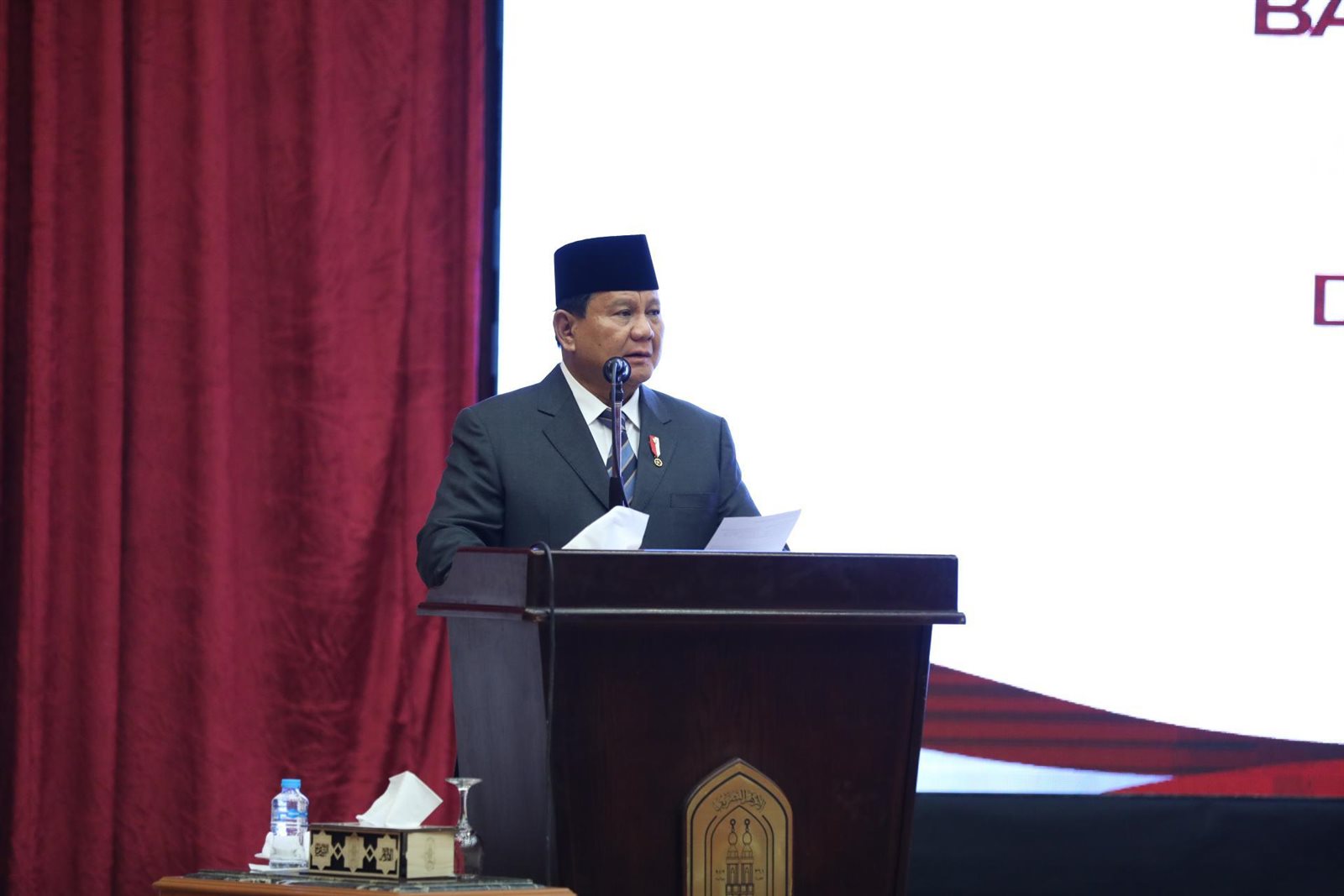 قال فرابوو سوبيانتو، الرئيس الإندونيسي، إنني أفتخر بأبنائي الدارسين بالأزهر، ولقد أسعدني لقائي مع أبنائي الدارسين في رحاب الأزهر الشريف اليوم، مضيفا أنه قد تخرج في الأزهر الكثير من أبناء إندونيسيا منهم رؤساء جمهورية ورؤساء وزراء وهذا فخر لنا جميعا كعبد الرحمن وحيد، الرئيس الرابع لإندونيسيا.