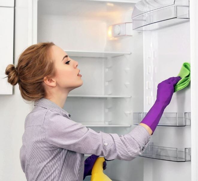 قبل البدء نقوم بتنظيف الثلاجة جيدًا.