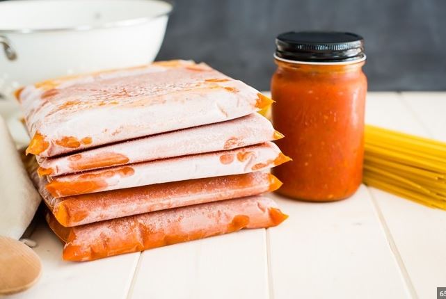 تُحفظ صلصة الطماطم في اكياس ثلاجة ويتم وضعها في الفريزر لحين احتياجها واستخدامها.