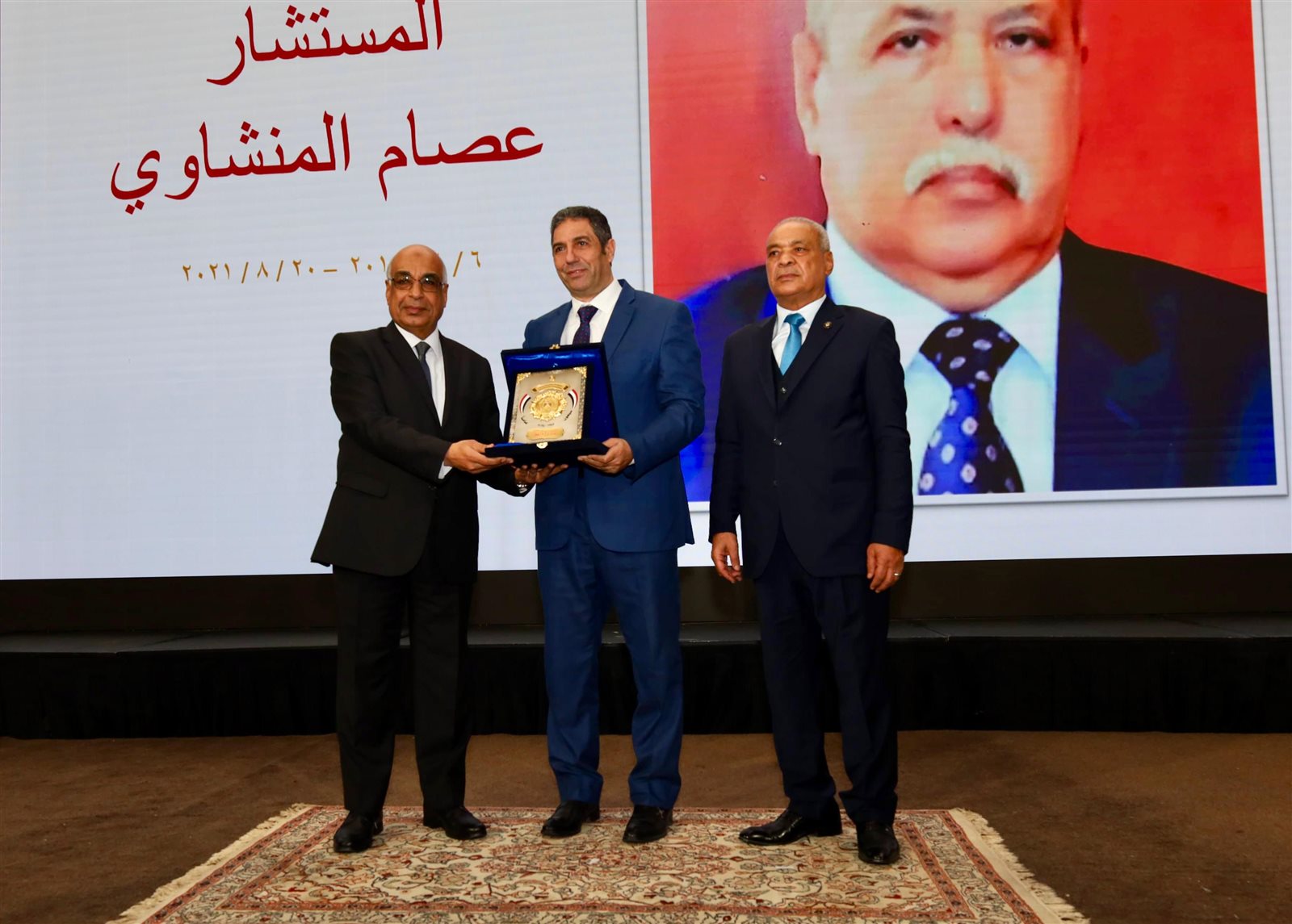 وأهدى المستشار عبد الراضي صديق رئيس الهيئة، المستشار عبد الوهاب عبد الرازق رئيس مجلس الشيوخ، و المستشارعدنان فنجري وزير العدل، درع النيابة الإدارية.