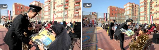 واصلت أجهزة وزارة الداخلية توزيع عدد من المساعدات العينية على المواطنين بمناطق الأسمرات، مدينة المحروسة، أهالينا، روضة السيدة زينب.