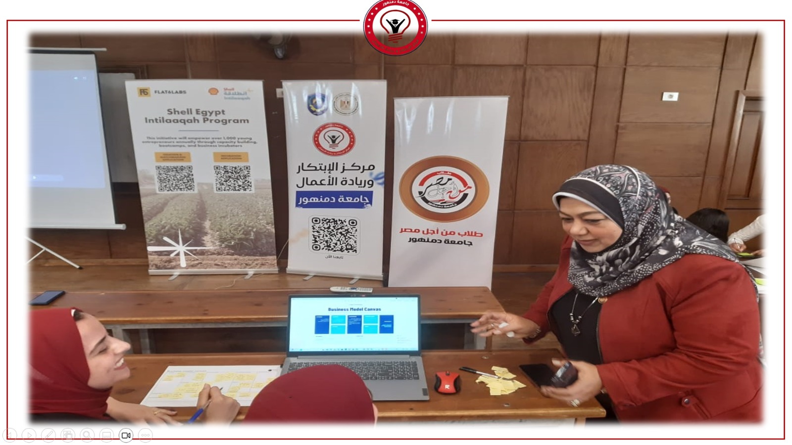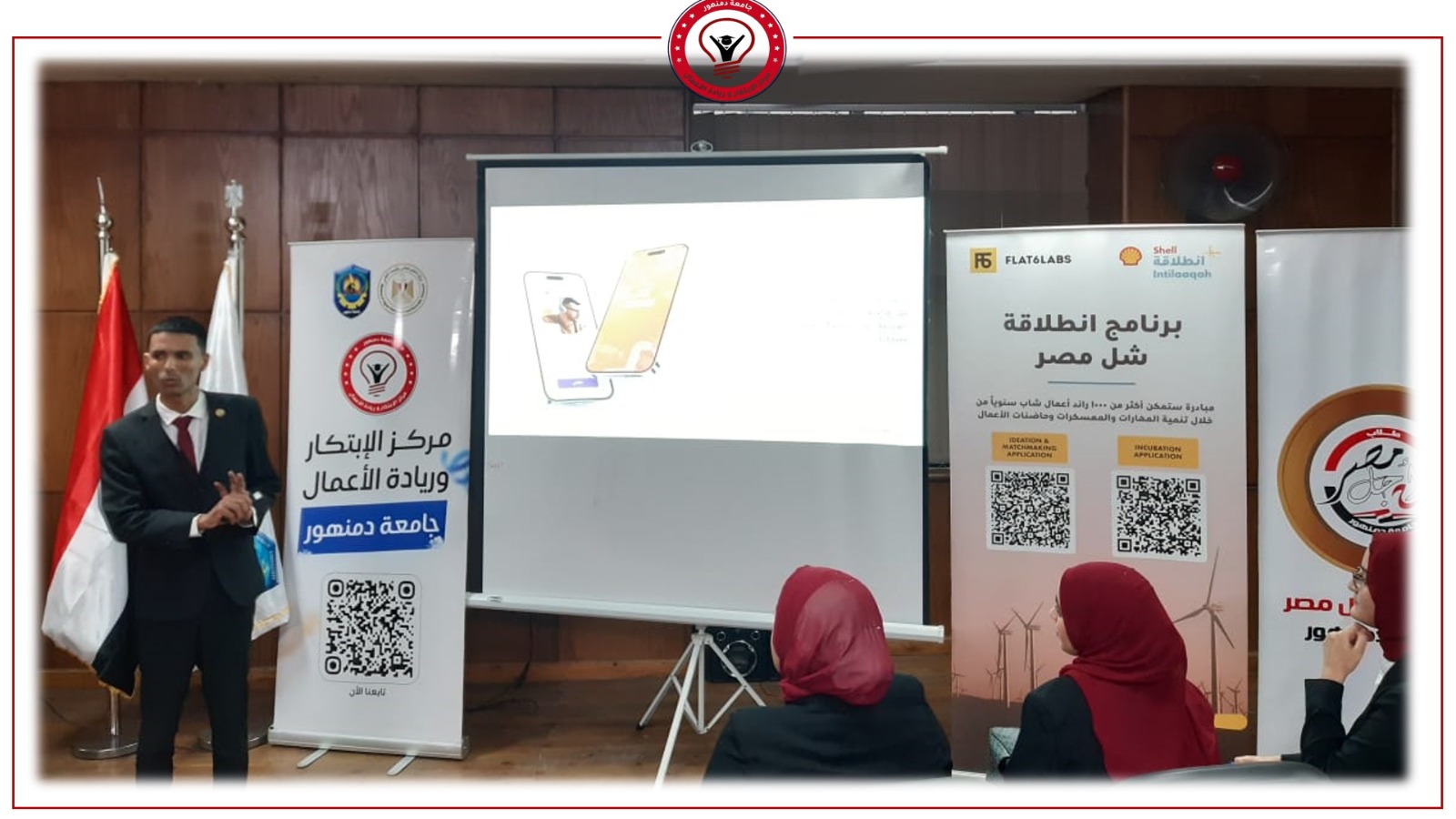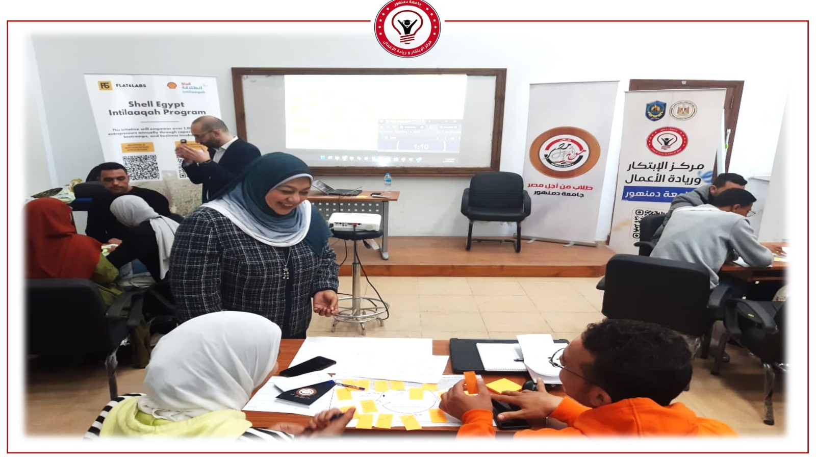 عقدت جامعة دمنهور فعاليات البرنامج التدريبي المكثف (انطلاقة)، لدعم المبتكرين ورواد الأعمال، والمقدم من "شل مصر" بالشراكة مع FLAT6LABS، وذلك للفرق الطلابية المتقدمة للبرنامج التدريبي من أصحاب الأفكار الابتكارية المميزة في المجالات التكنولوجية المختلفة، بتنسيق وتنظيم رائع لأسرة طلاب من أجل مصر المركزية بالجامعة، ومشاركة عدد كبير من الطلاب بمختلف كليات الجامعة.