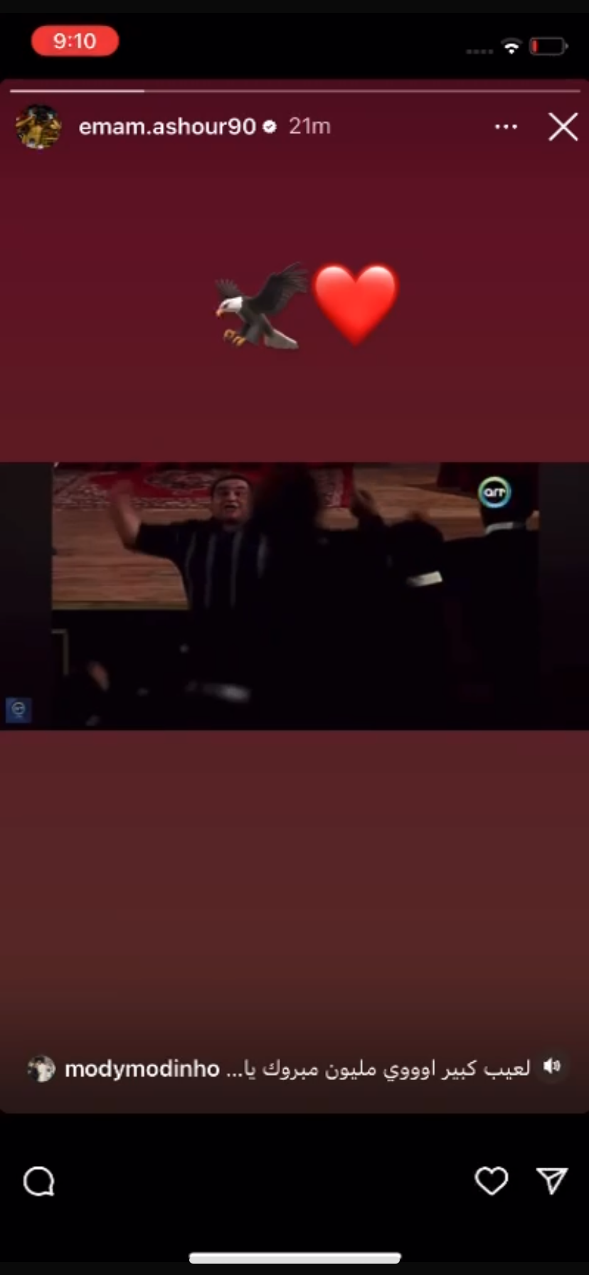 ونشر عاشور فيديو مقتطف من فيلم الناظر "على حسابه الخاص على إنستجرام وعلق عليها بالنسر وقلب.