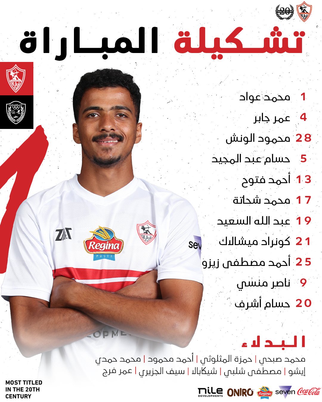خط الدفاع : أحمد فتوح - حسام عبدالمجيد - محمود الونش - عمر جابر.