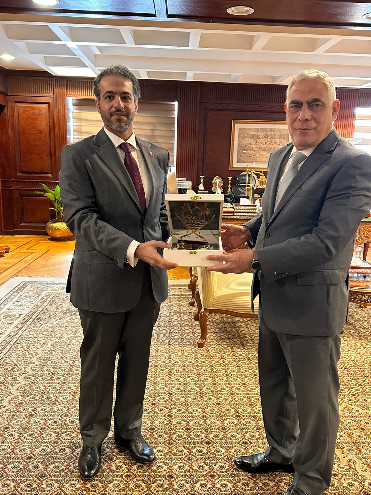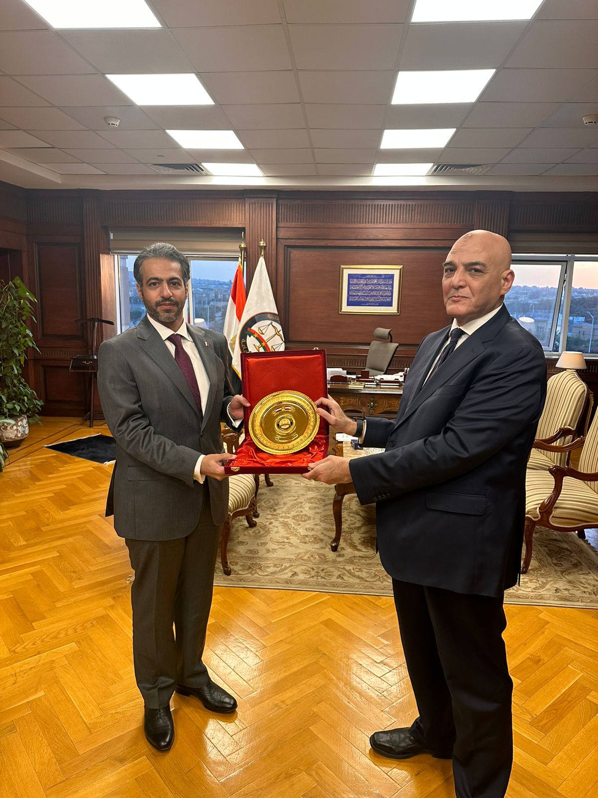 وفي أعقاب ذلك، التقى المستشار مدير التفتيش القضائي، بالضيف الكريم، وقدم له هدية تذكارية امتنانًا وترحيبًا بتلك الزيارة.