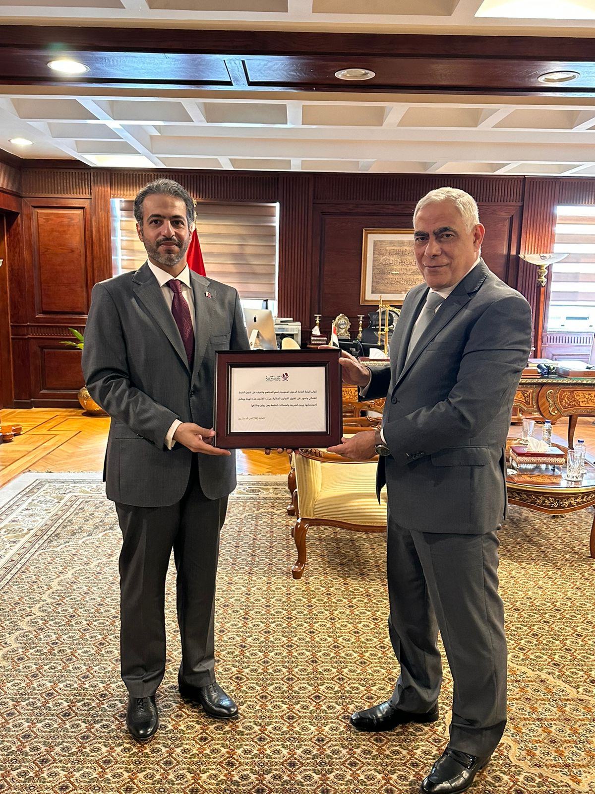 ومن جانبه؛ نقل مدير معهد الدراسات الجنائية، إلى المستشار النائب العام، تحيةَ النائب العام لدولة قطر، وقدم له درعًا تذكاريًا نيابة عنه.