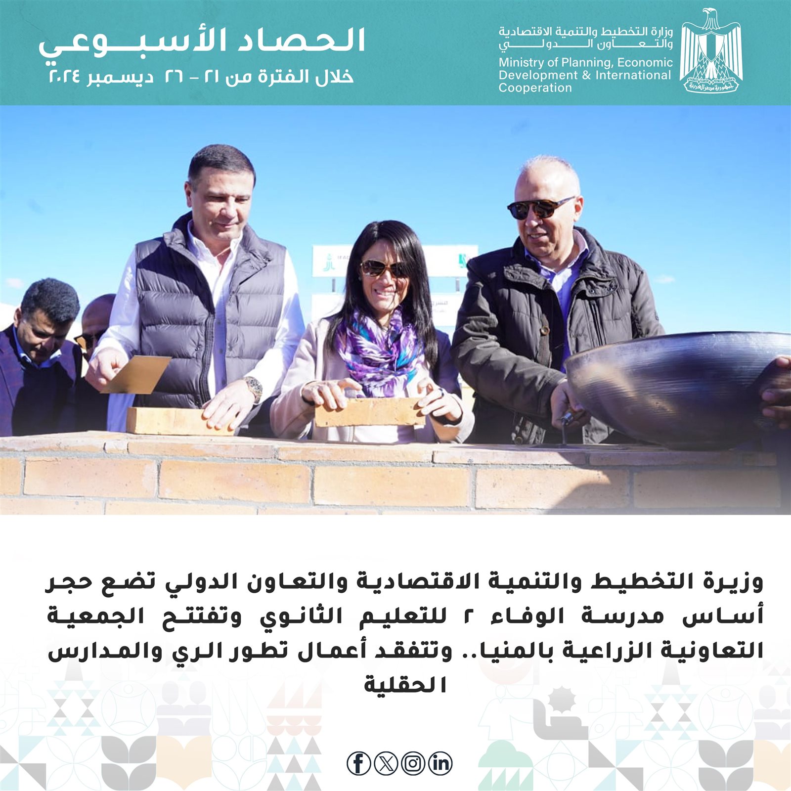 الحصاد الأسبوعي لأنشطة وزارة التخطيط والتعاون الدولي