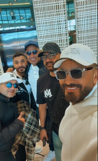 وشارك تامر حسني متابعيه بمجموعة صور من رحلته من أحد المطارات في المملكة العربية السعودية، مع طاقم عمله متجهاً إلى دبي معلقاً على الصور: “في مطار الرياض مُتجهين إن شاء الله على مطار دُبي استعداداً لحفل رأس السنة يارب سنة أفضل وأجمل على الجميع".