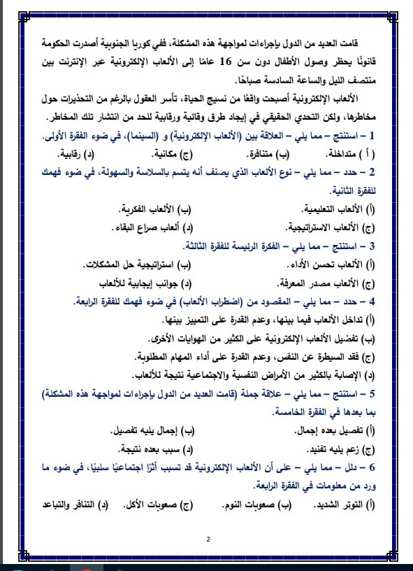 - تغطي الأسئلة مستويات الصعوبة المختلفة لتكون قادرة على التمييز بين مستويات التحصيل الدراسي للطلاب.
