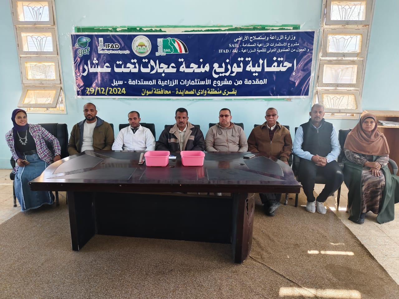 قام المدير التنفيذي لمشروع التنمية الزراعية المستدامة وسبل المعيشة "SAIL"، بتوزيع مجموعة من الأبقار على 104 سيدة و 52 عجلة للأطفال، من أهالي قرى وادي الصعايدة في محافظة أسوان، وذلك تحت رعاية علاء فاروق وزير الزراعة واستصلاح الأراضي والمهندس مصطفى الصياد نائب وزير الزراعة.