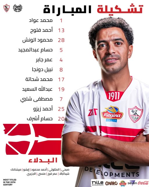 ويتواجد على مقاعد البدلاء، محمد صبحي وحمزة المثلوثي وأحمد محمود وأحمد عبد الرحيم "إيشو" ومحمود عبد الرازق "شيكابالا" وكونراد ميشالاك وعمر فرج وسيف الجزيري وناصر منسي.