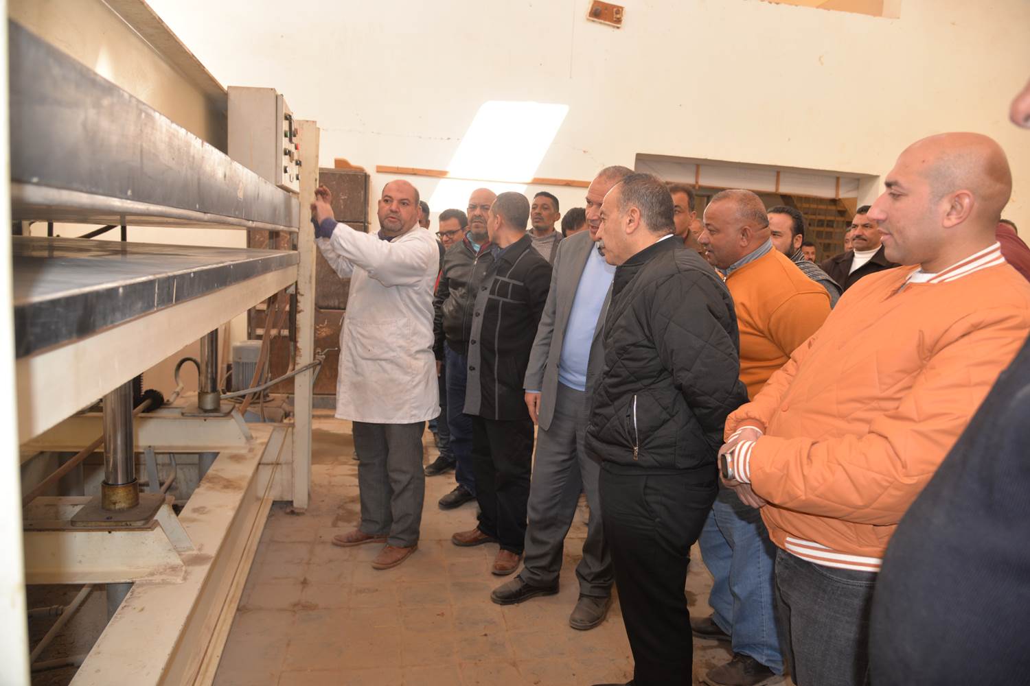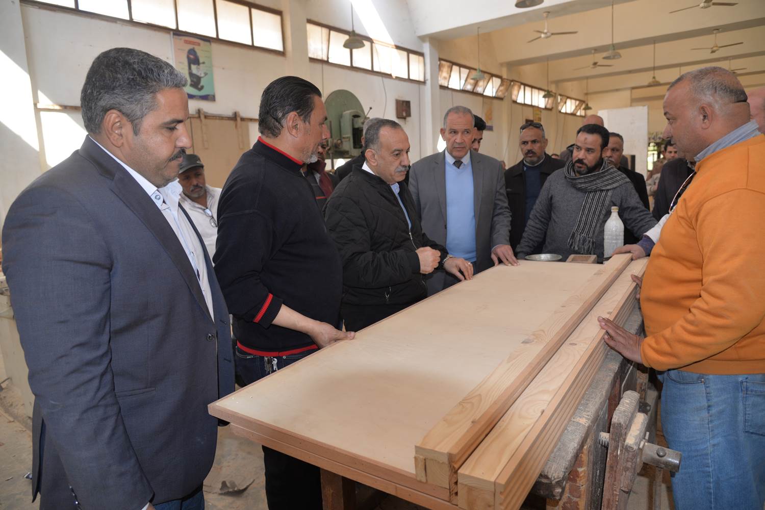 بدأ المحافظ جولته بتفقد أقسام المدرسة وتابع خلالها التدريب العملي للطلاب بأقسام الصيانة والأعمال الصحية وقسم الماكينات وقسم نجارة الأثاث وشاهد عمل مكبس الأخشاب موجهاً بالاستفادة من مخلفات الجريد واستغلالها في كبس الأخشاب وتشغيل المعادن والتشكيل واللحام وقسم أعمال البناء والزخرفة وشاهد كيفية عمل بعض المعدات وماكينات التصنيع، كما وجه بالتنسيق مع الحملة الميكانيكية بالمركز لنقل كميات الحديد والأخشاب غير المستغلة والإستفادة منها عن طريق إعادة تصنيعها وتدويرها.
