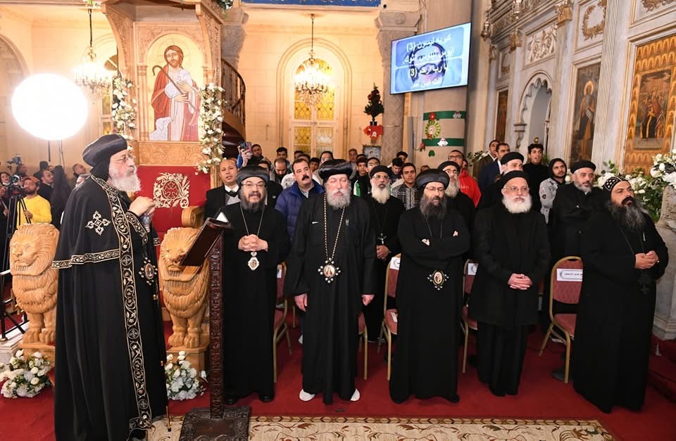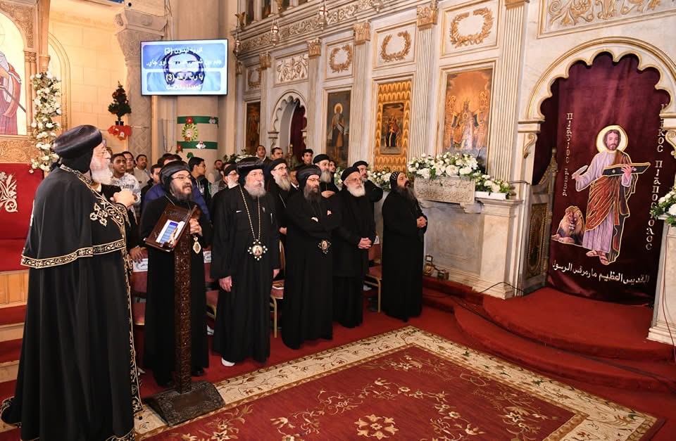 الأنبا باڤلي، والأنبا إيلاريون، والأنبا هرمينا. ثم اختتمت التسبحة وألقى بعدها قداسة البابا كلمة هنأ في بدايتها ببدء العام الجديد 2025 لافتًا إلى أنه يتميز بأن به يكتمل الربع الأول من القرن الحادي والعشرين.
