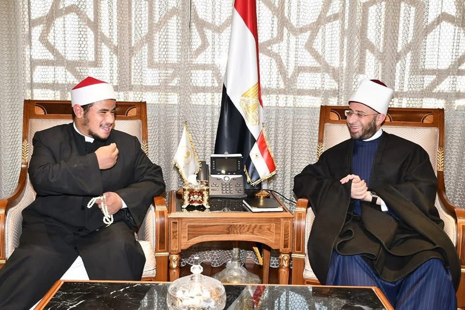 وزير الأوقاف يستقبل الشاب محمود نجاح أبو زينة صاحب واقعة "القطة الشهيرة"