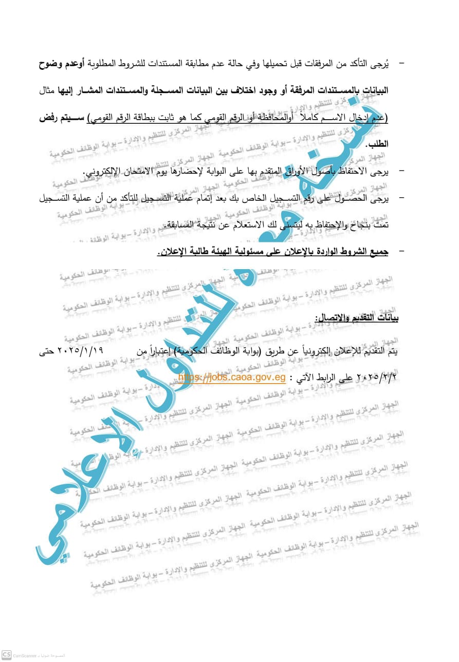 للتعرف على الشروط والمستندات المطلوبة يمكن للراغب في التقدم الاطلاع على تفاصيل الإعلان على موقع بوابة الوظائف الحكومية: https://jobs.caoa.gov.eg/.
