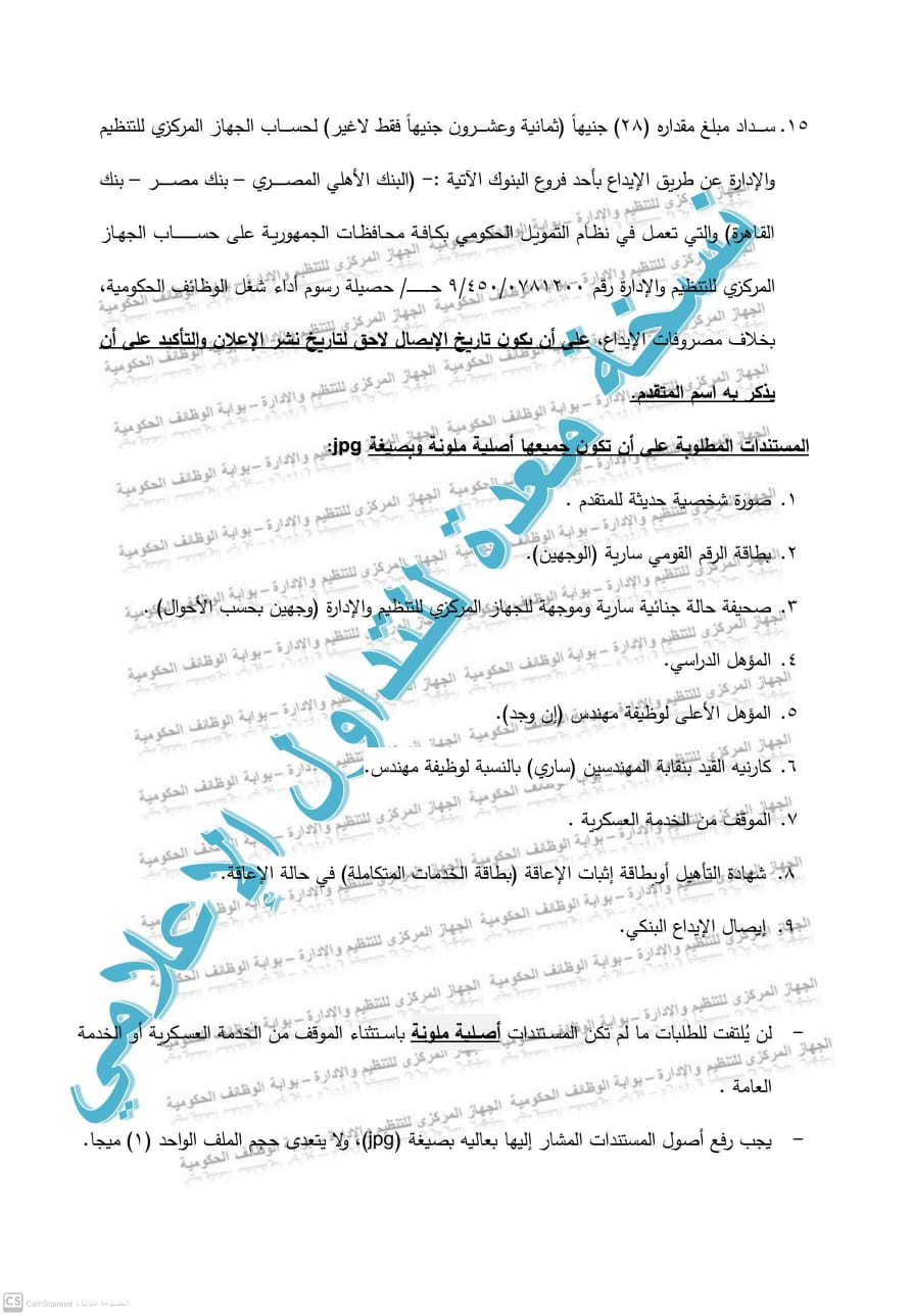 وأضاف الجهاز المركزي للتنظيم والإدارة، انه من المقرر إتاحة التقديم في المسابقة في الفترة من 19 يناير الجاري حتى 2 فبراير المقبل على موقع البوابة أيضا.