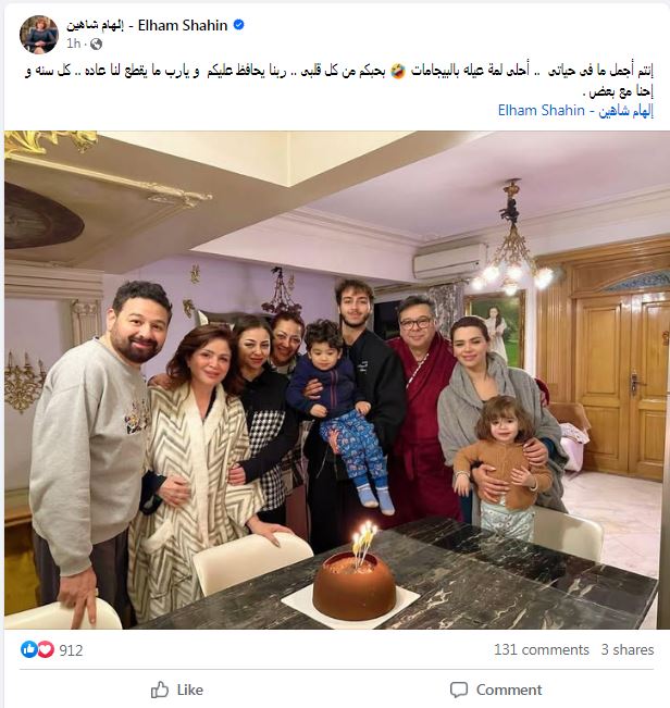 احتفلت النجمة إلهام شاهين بعيد ميلادها الـ 64 في أجواء عائلية خاصة ، ونشرت إلهام صورة تجمعها بعائلتها عبر صفحتها الرسمية "فيس بوك"وعلقت عليها " أنتم أجمل ما فى حياتى .. أحلى لمة عيلة بالبيجامات بحبكم من كل قلبى ربنا يحافظ عليكم و يارب ما يقطع لنا عاده ، كل سنه و إحنا مع بعض ".