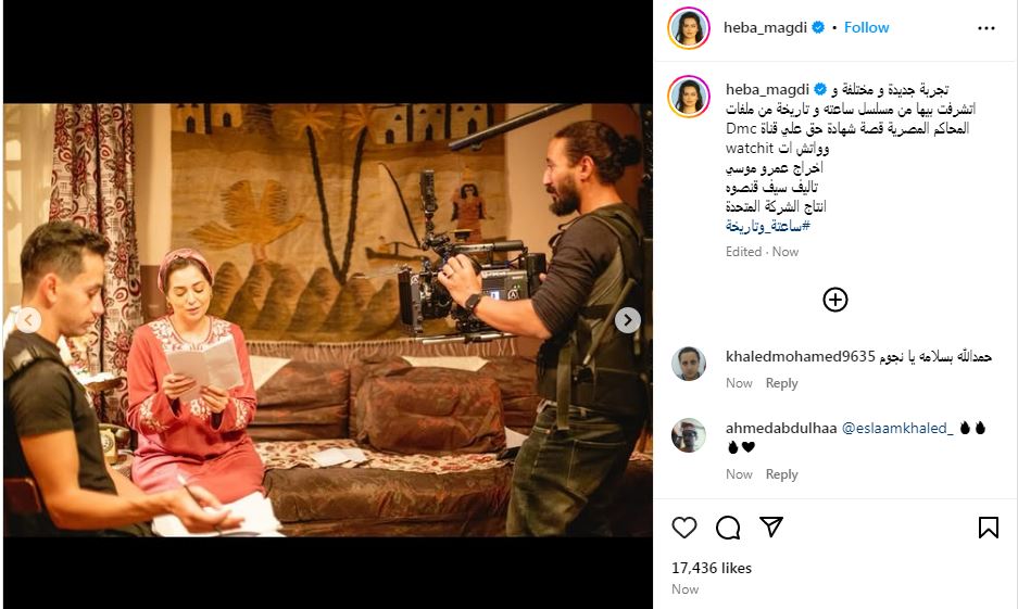 ونشرت هبة صور من كواليس الحلقة عبر صفحتها الرسمية "إنستجرام" وعلقت عليها " تجربة جديدة و مختلفة و اتشرفت بيها من مسلسل ساعته و تاريخه من ملفات المحاكم المصرية قصة شهادة حق على قناة Dmc ووتش ات watch it .