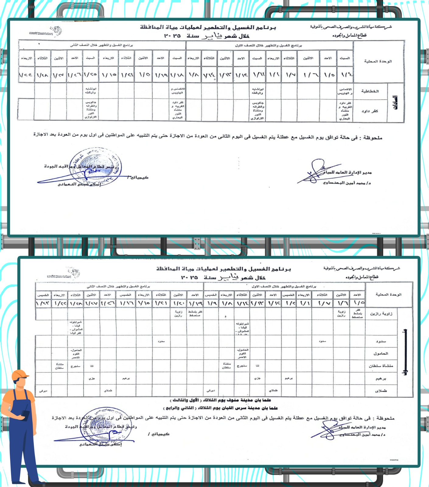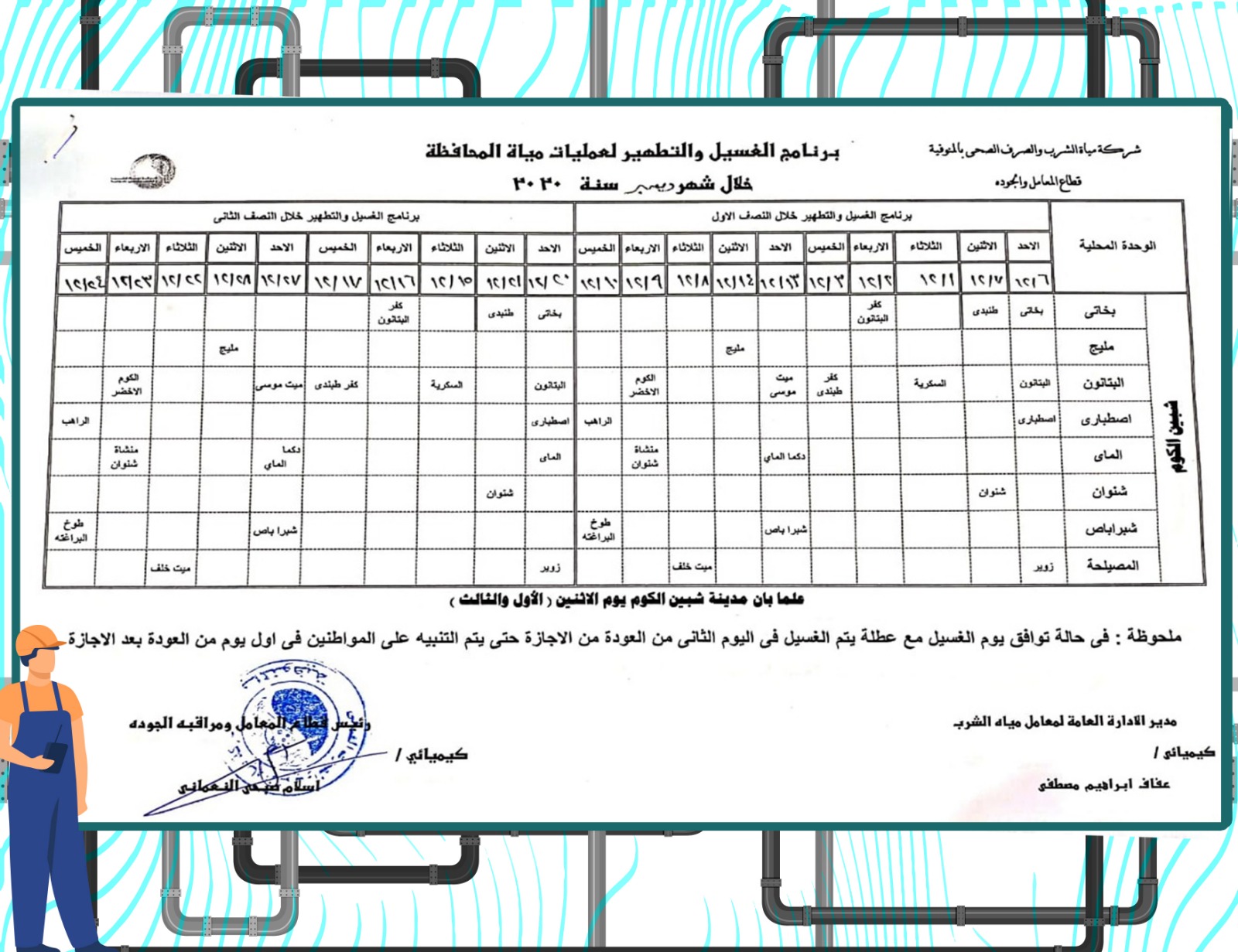 يأتي ذلك تنفيذاً لتوجيهات اللواء إبراهيم أبو ليمون محافظ المنوفية بالاستمرار في أعمال الصيانة الدورية اللازمة طبقاً للخطة الموضوعة لغسيل شبكات المياه بمختلف مناطق المحافظة للتأكد من جودة المياه المقدمة للمواطنين .
