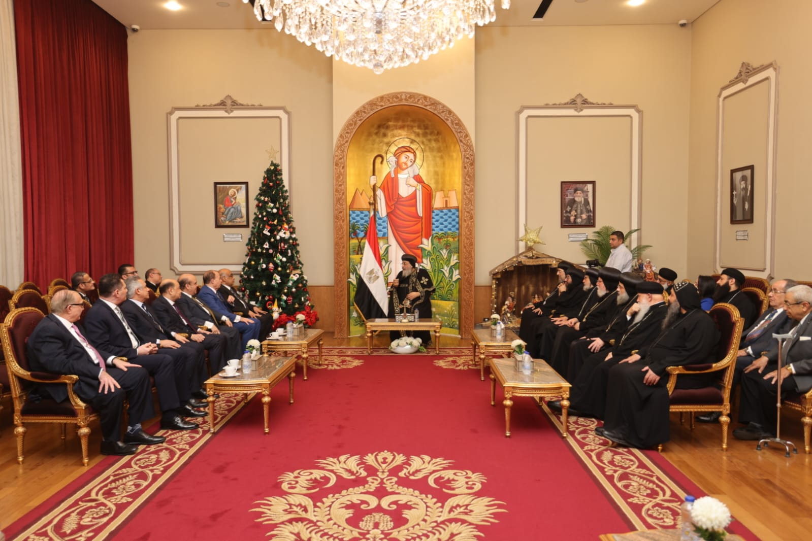 توجه اليوم الأحد الموافق 5/1/2025 المستشار عدنان فنجري وزير العدل إلي المقر البابوي بالكاتدرائية المرقسية بالعباسية يرافقه عدد من مساعديه، لتقديم التهنئة إلي قداسة البابا تواضروس الثاني بابا الإسكندرية و بطريرك الكرازة المرقسية وإلي جميع الأخوة الأقباط بمناسبة عيد الميلاد المجيد.