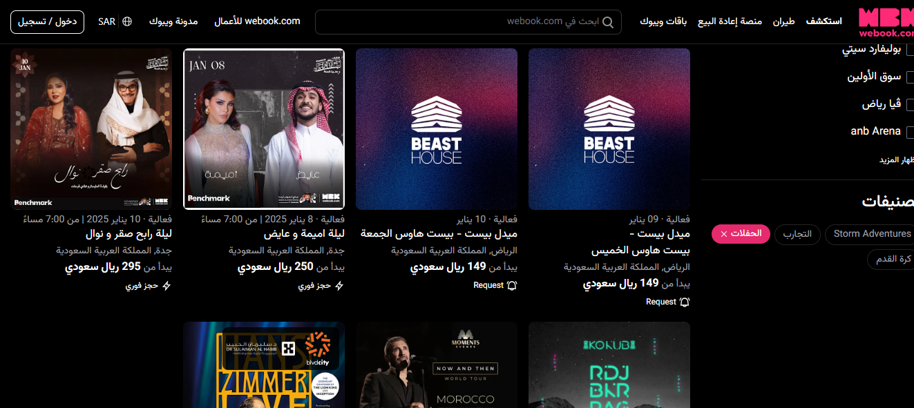 طريقة حجز التذاكر عبر منصة “وي بوك”