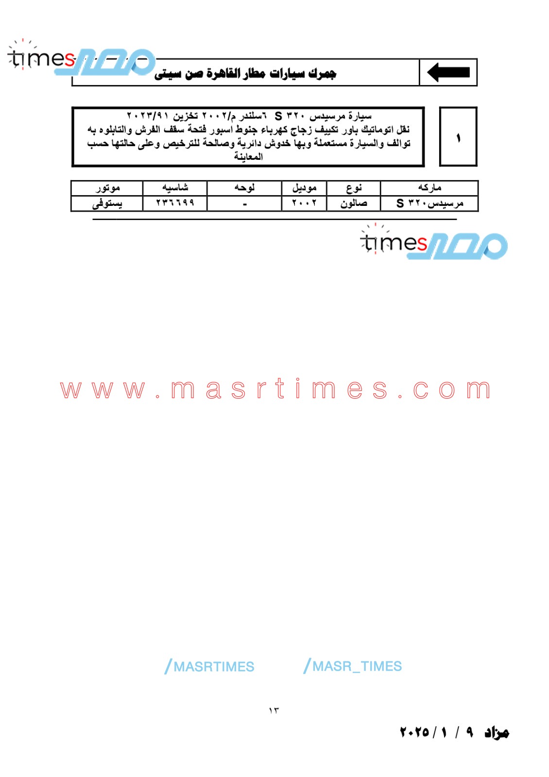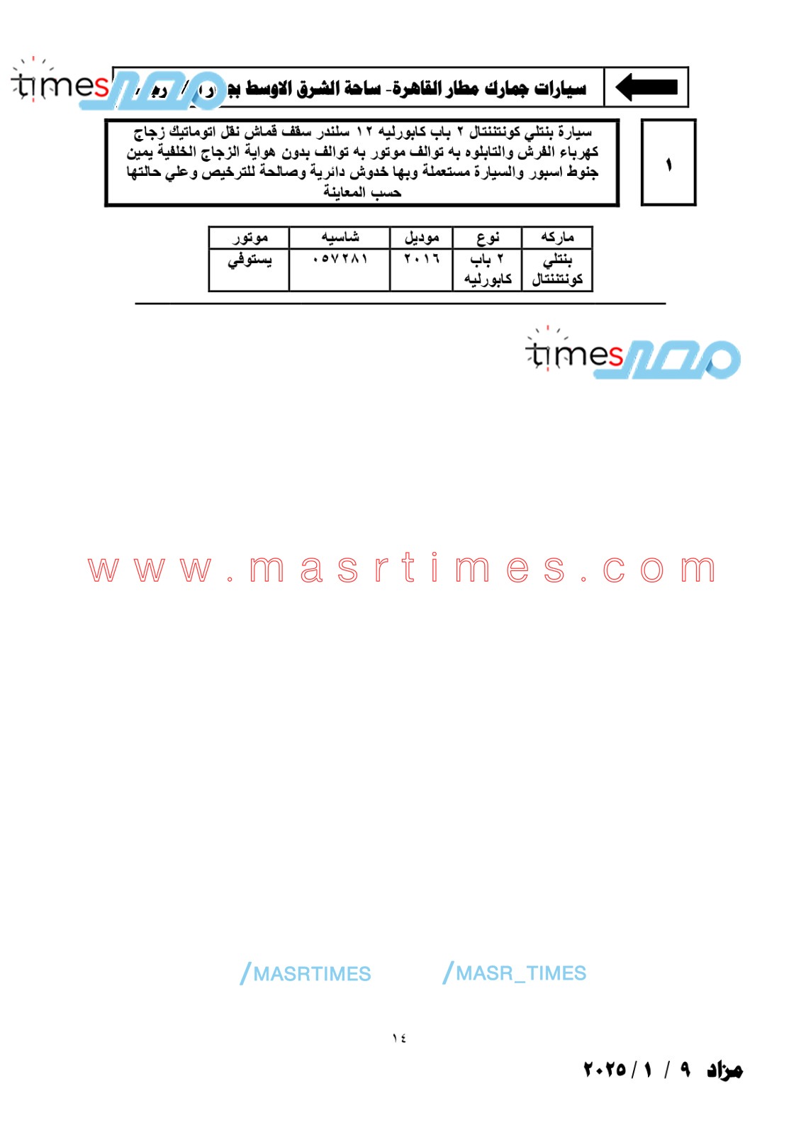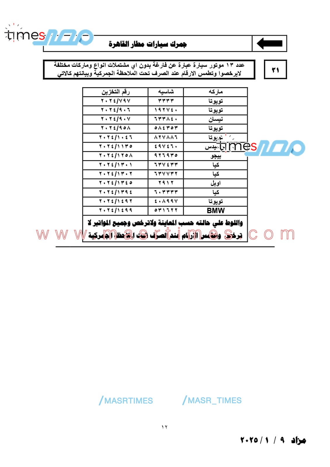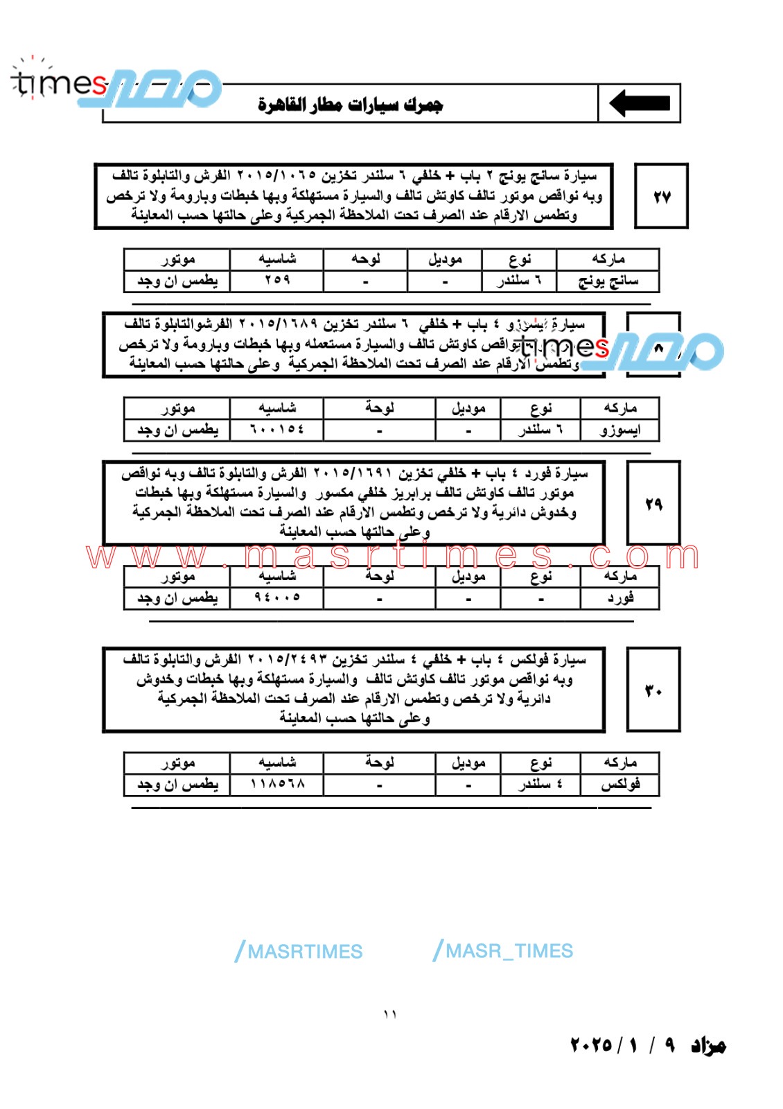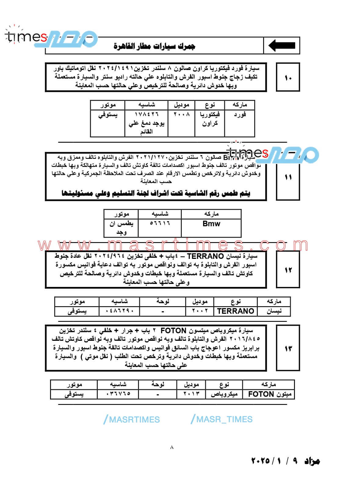 تابع مزاد سيارات جمارك مطار القاهرة 2025