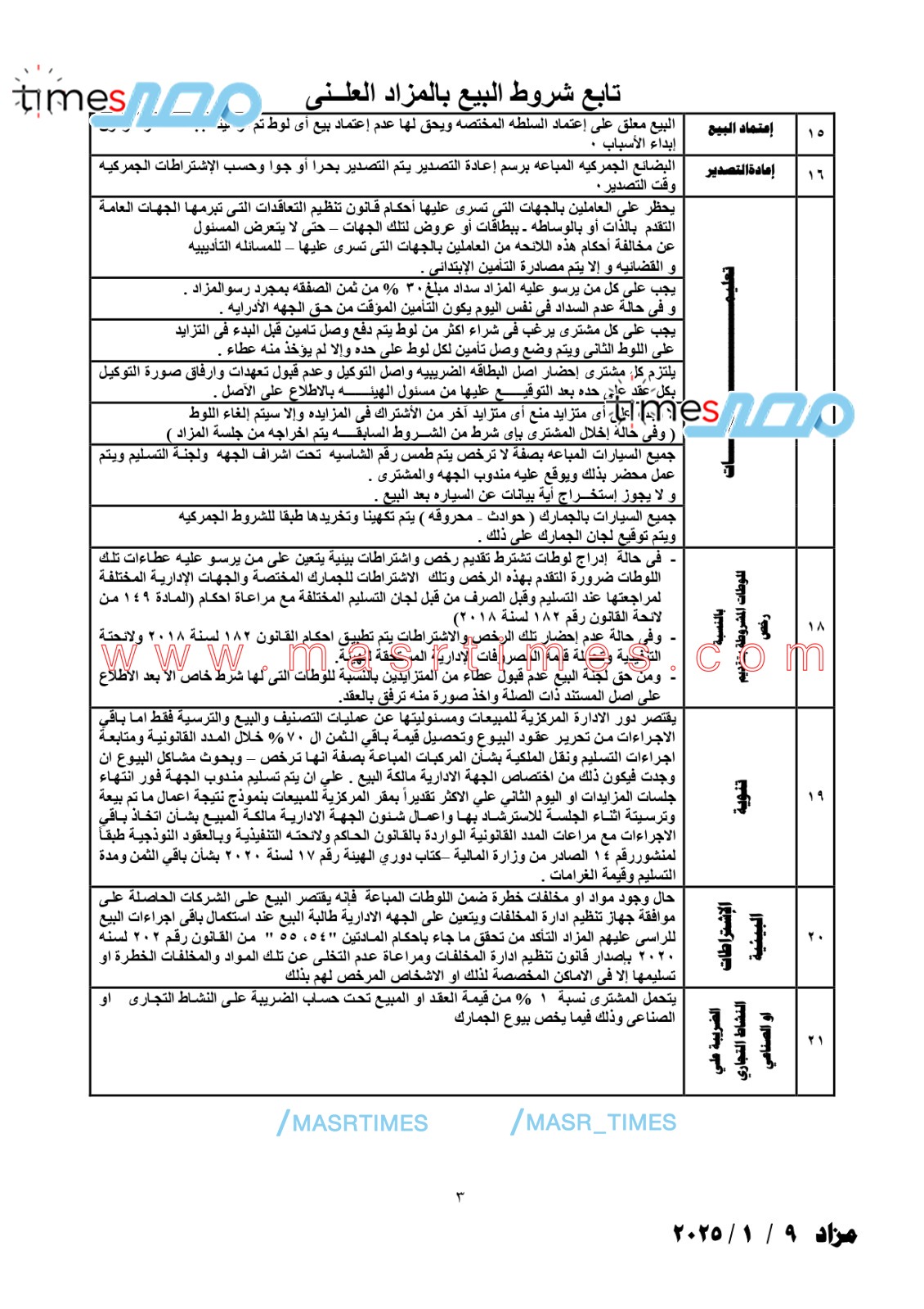 - لا يُسمح للعاملين في الجهات العامة بالمشاركة في المزاد.