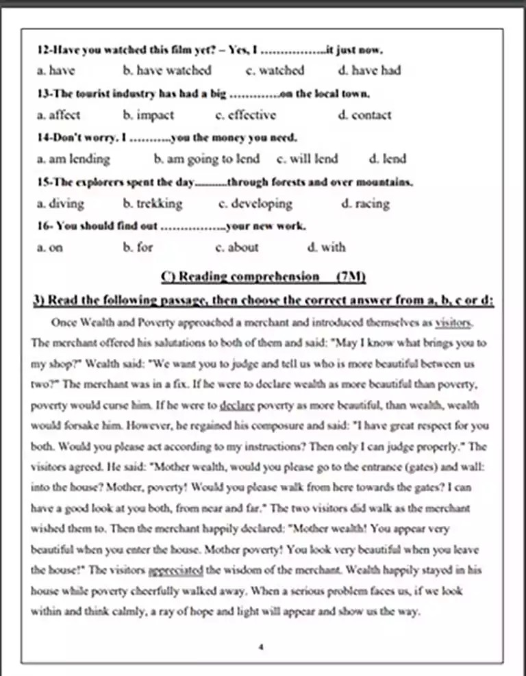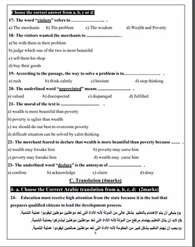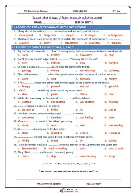 نماذج امتحان انجليزي أولى ثانوي 2025 نماذج امتحان انجليزي أولى ثانوي 2025