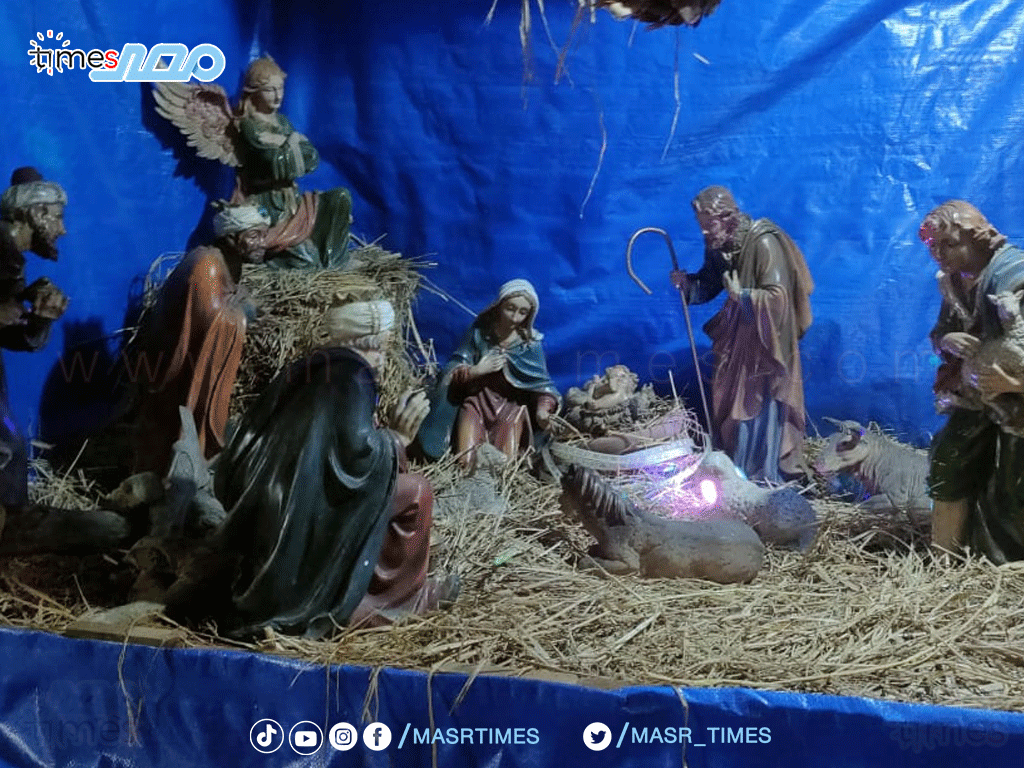 مشهد ولادة المسيح".. كنيسة الأنبا بيشوي ببورسعيد تبدع في تصميم مجسم المزود بعيد الميلاد المجيد