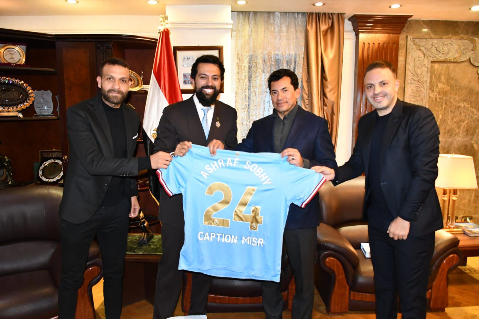 وزير الرياضة بستعراض تجربة "كابيتانو" أمام قبادات إعمار البريطانية في مان سيتي