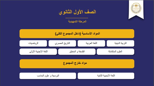 وأوضحت وزارة التربية والتعليم والتعليم الفني أن هناك عددا من المواد التي سوف يدرسها الطالب في المرحلة التمهيدية والتي لا تضاف إلى المجموع؛ وهي: “البرمجة وعلوم الحاسب، اللغة الأجنبية الثانية”.