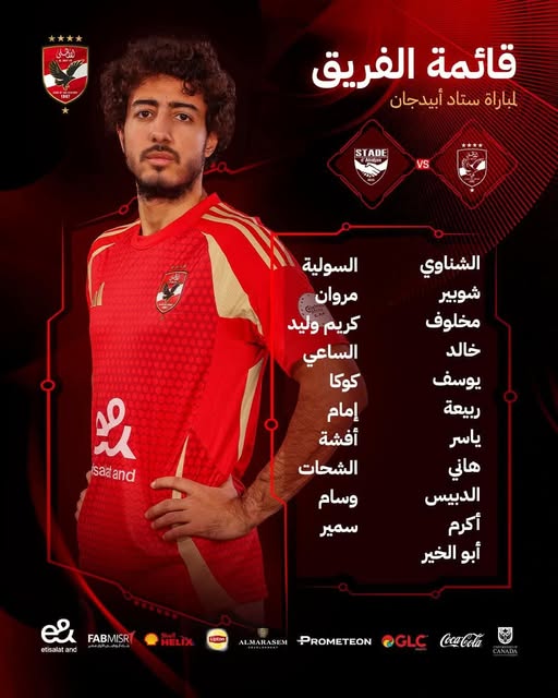 تشكيل الأهلي لمواجهة ستاد أبيدجان