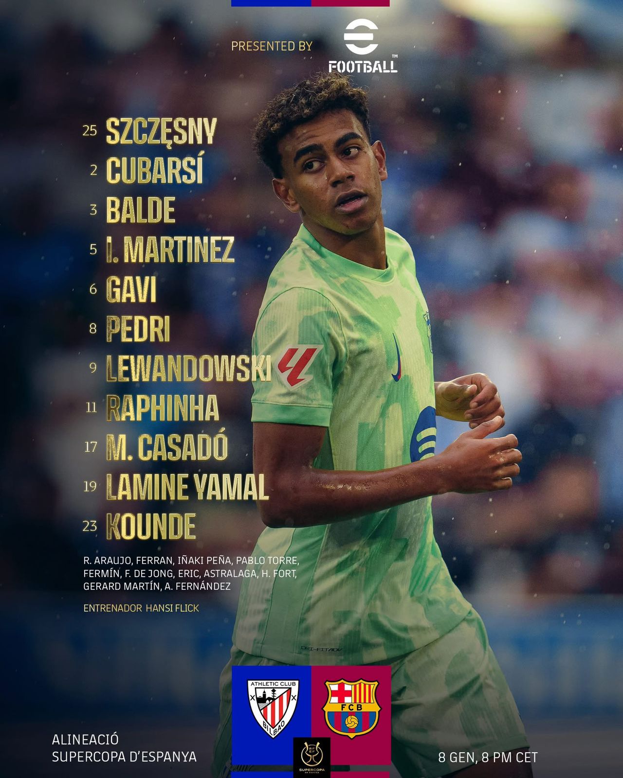 لامين يامال يقود هجوم برشلونة أمام أتلتيك بلباو في كأس السوبر الإسباني