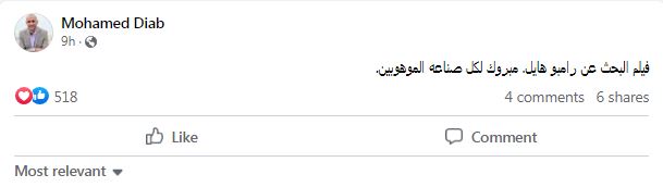 وكتب المخرج محمد دياب عبر صفحته الرسمية "فيس بوك" " فيلم البحث عن رامبو هايل. مبروك لكل صناعة الموهوبين".