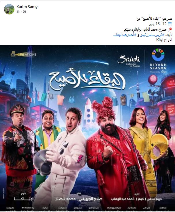 كشف المؤلف كريم سامي، عن موعد عرض مسرحية «البقاء للأصيع»، في موسم الرياض بالمملكة العربية السعودية.
