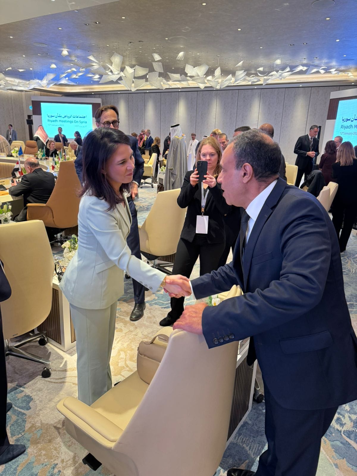 جاء ذلك خلال لقاءات جانبية لوزير الخارجية والهجرة على هامش اجتماعات الرياض بشأن سوريا يوم الأحد ١٢ يناير ٢٠٢٥، مع كل من "أنالينا بيربوك" وزيرة خارجية ألمانيا، "ديفيد لامي" وزير خارجية بريطانيا، "جير بيدرسون" المبعوث الأممي إلى سوريا.