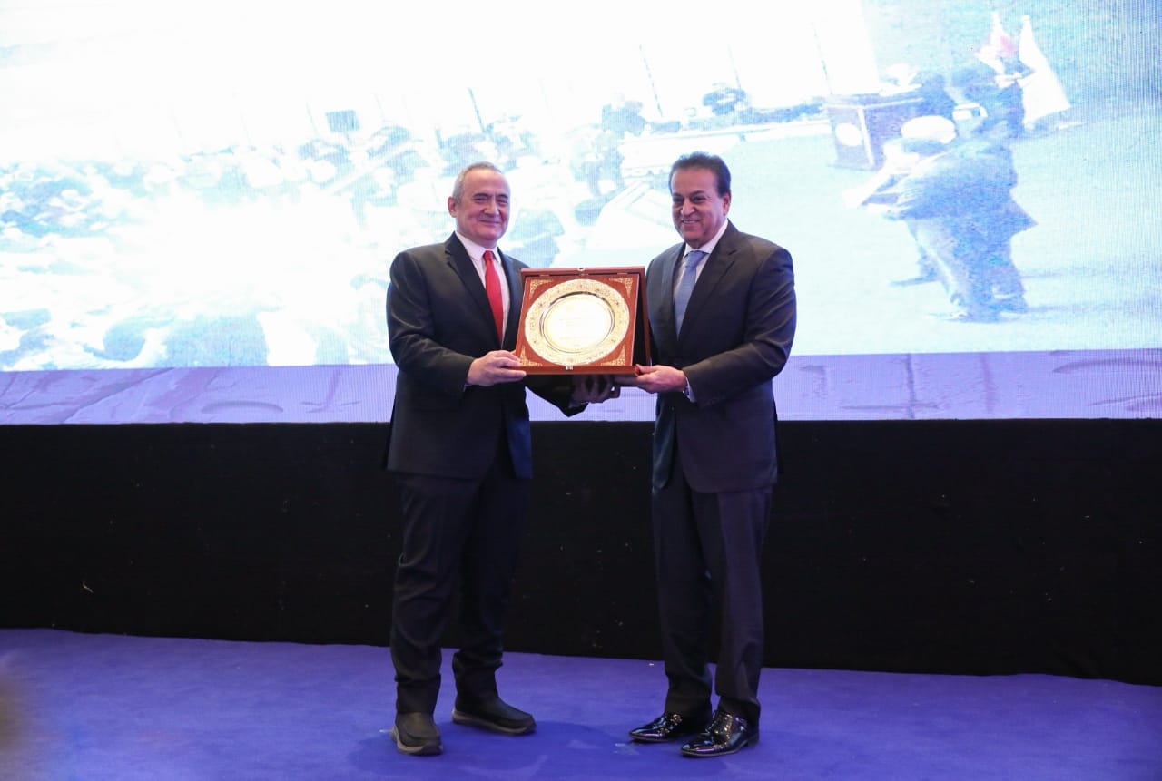 اختتمت الجلسة الافتتاحية للمؤتمر بتكريم الدكتور خالد عبدالغفار، نائب رئيس مجلس الوزراء وزير الصحة والسكان، من قبل الدكتور محمد مصطفى عبدالغفار، رئيس الهيئة العامة للمستشفيات والمعاهد التعليمية، تقديرًا لدوره البارز في تطوير المنظومة الصحية في مصر، فيما قام نائب رئيس مجلس الوزراء وزير الصحة والسكان بتكريم أصحاب المراكز الخمسة الأولى في مسابقة الهيئة للنشر الدولي، وهم: الدكتور محمد بكر شلبي، والدكتور محمد أسامة عدلي، والدكتور محمد عمرو حسين، والدكتور حلمي عبد الفتاح الأسود، والدكتور أحمد يحيى حجاب، والدكتور عبدالحميد أباظة، تثمينًا لإسهاماتهم العلمية المتميزة.