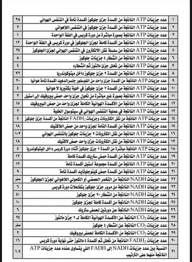 كما يُمكن الاطلاع على ملخص أرقام الأحياء تانية ثانوي الترم الأول، عبر الصورة التالية: