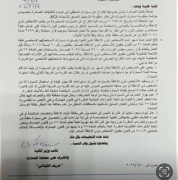 عاجل.. الجمارك تعلن رسميًا بدء الإفراج عن سيارات المعاقين من الموانئ (مستند)