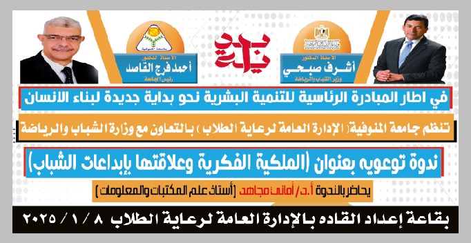 ونظمت الشباب والرياضة أولى فعاليات سلسلة الندوات بجامعة المنوفية أدارت اللقاء الدكتورة أماني جمال مجاهد موسي - أستاذ علم المكتبات والمعلومات بكلية الآداب – جامعة المنوفية.