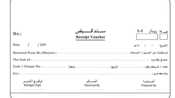محتويات نموذج إيصال استلام نقدية